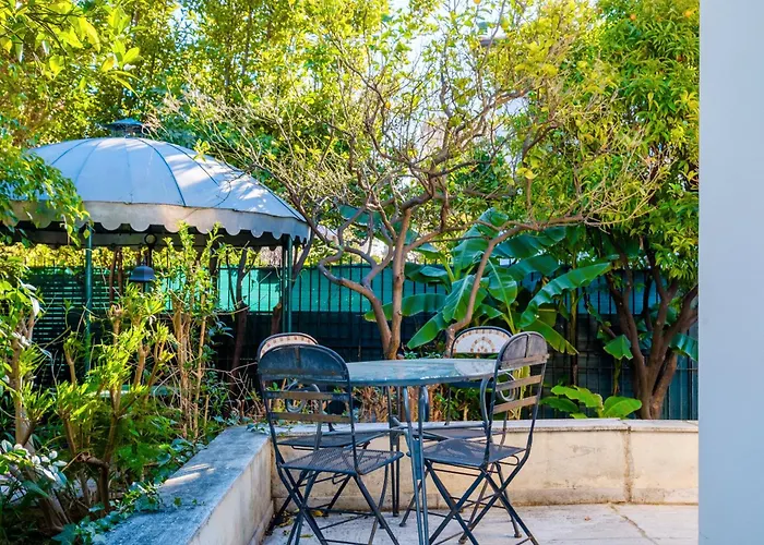 Tijdens een verblijf in Villa Eden 2 Menton van 55 m^2 kunnen gasten zich ontspannen op een terras op ongeveer 10-minuten loopafstand van Les Jardins Biovès. Dit appartement biedt uitzicht op de tuin.
